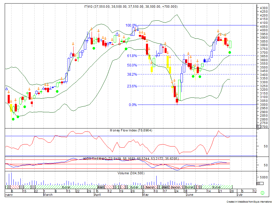 2. Harga minyak kembali turun di sekitar 75 USD/barel, sehingga menghambat saham mining untuk kembali rally.