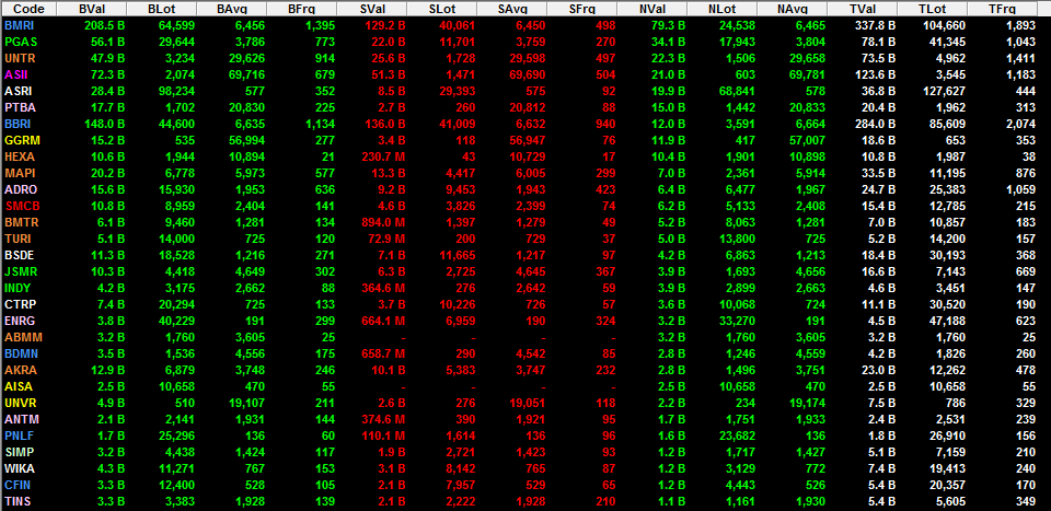 Warna Hijau : adalah saham-saham yang break out (Buat trader Buy High Sell Higher).