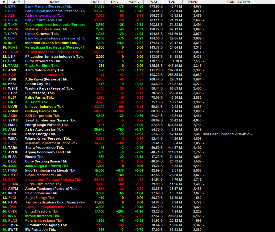 Warna Hijau : adalah saham-saham yang break out (Buat trader Buy High Sell Higher).