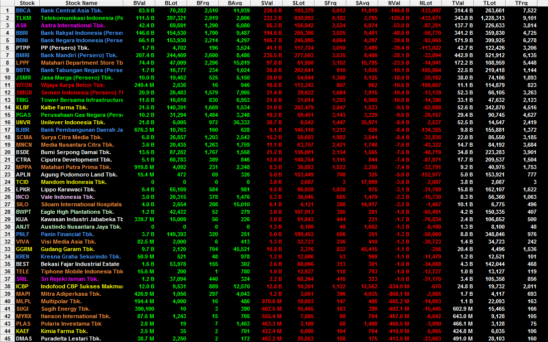 IHSG ditutup pada level 4335.953, turun -105.958 (-2.39%), dengan total value transaksi pada market reguler sebesar 3.7 trilyuns, dimana asing net sell sebesar 529 milyards Rupiah.