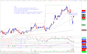 3. Saat ini boleh dikatakan bahwa gerakan IHSG sudah berlawanan dengan Dow jones, karena Dow masih butuh confirm 1 hari lagi, Dow harus mampu naik diatas candle penurunan 3 hari yang lalu yaitu tanggal 8 Agustus 2011, yakni harus berhasil naik diatas 11.420, baru bisa dikatakan bottom reversal, sedangkan saat ini Dow baru berhasil naik pada level 11.143.