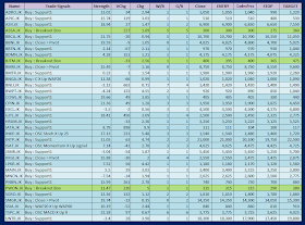 Strenght : Berhubungan dengan kondisi trend. Semakin besar posisinya artinya semakin bullish. (Max 100 minimal -100), Penulis kadang tidak menimbulkan kolom strenght, bila saham pilihannya terlalu banyak, karena Penulis sudah pilihkan dengan saham yang berwarna hijau, biru dan putih.